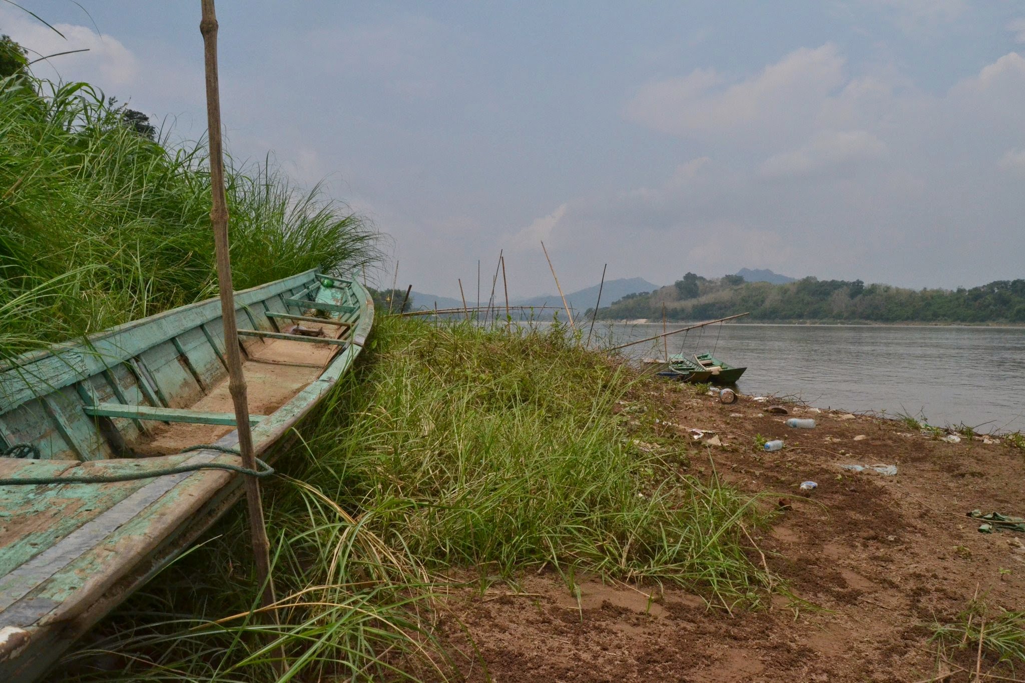 A woman in classic long Laos skirt and silky pink shirt spits phlegm wretched from the bowels of her gullet over the side of the boat for the sixth time in two hours. She spits as well (and as loud) as an outfielder. Cows and a fat pig sit on the beach dreaming calmly.